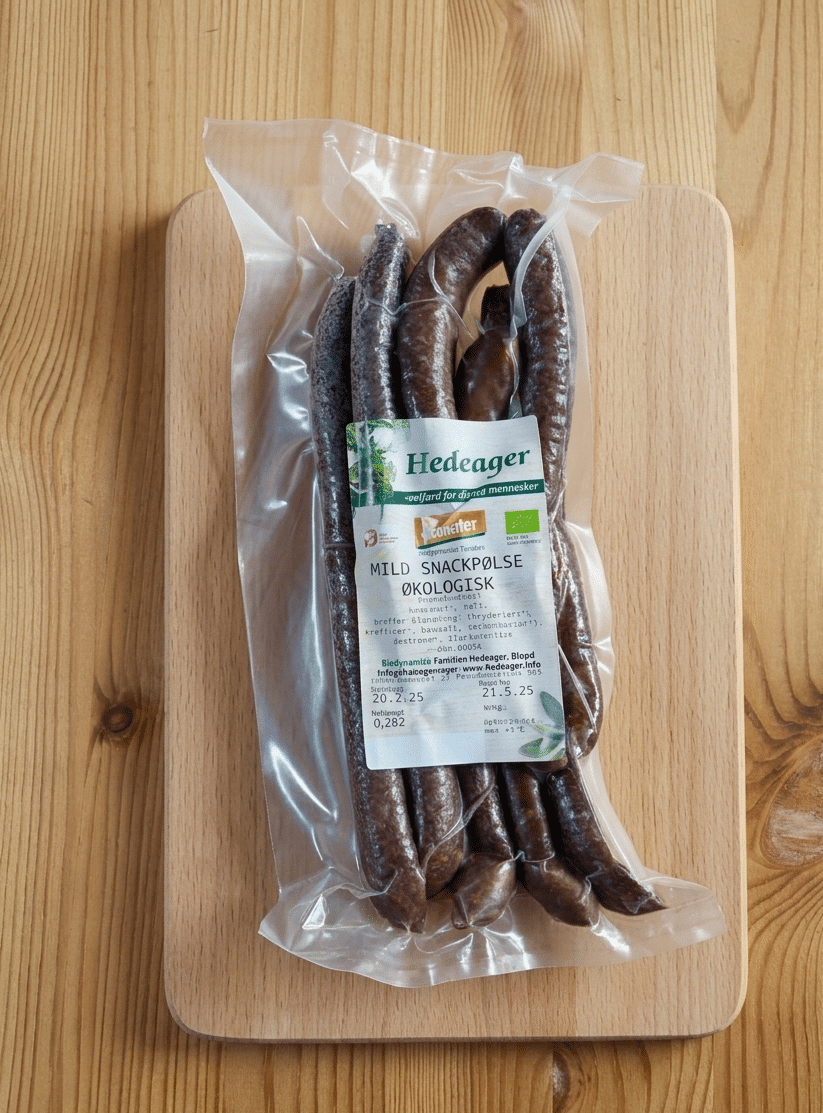 Mild biodynamisk snackpølse.
